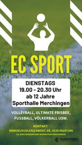 sowie ist die wöchentliche Veranstaltung EC Sport in der Sporthalle in Merchingen.